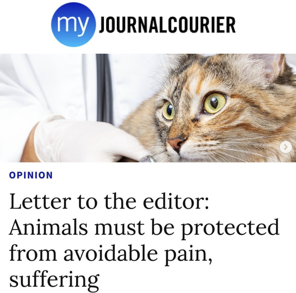 MY JOURNAL COURIER - Animals must be protected from avoidable pain, suffering